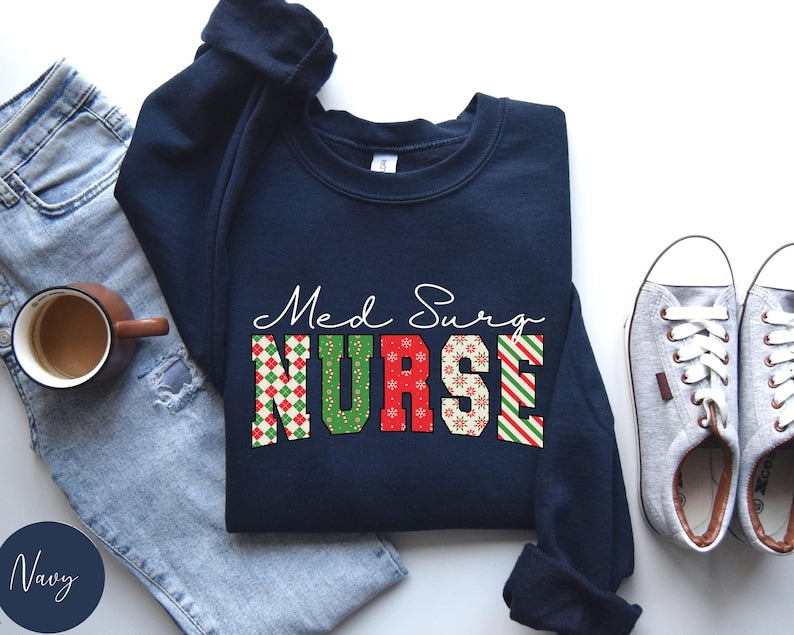 Christmas Med Surg Nurse Sweatshirt, Medical Surgical Nurse Crewneck, Med Surg Nurse Gift for Med-Surg