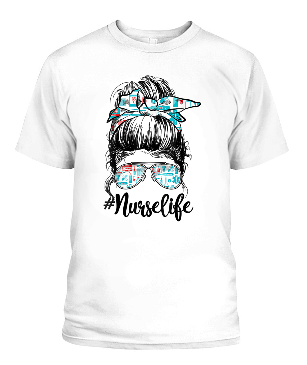 Nurse Cute Messy Bun Girl Nursing Life Mother's Day. Messy bun girl design wearing bandana...