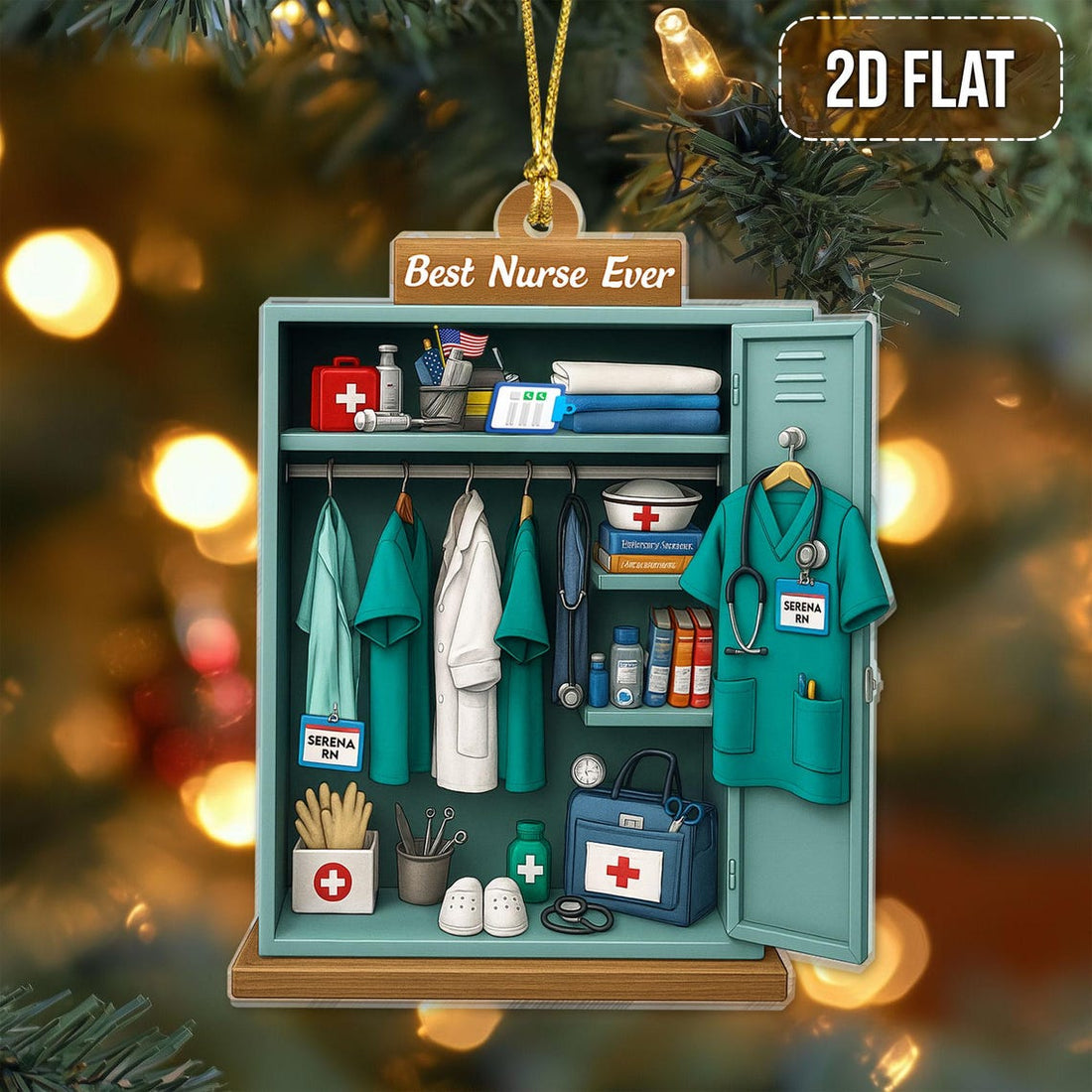 Personalized Nurse Locker Ornament 2D Flat Style Christmas Ornament For Nurse
