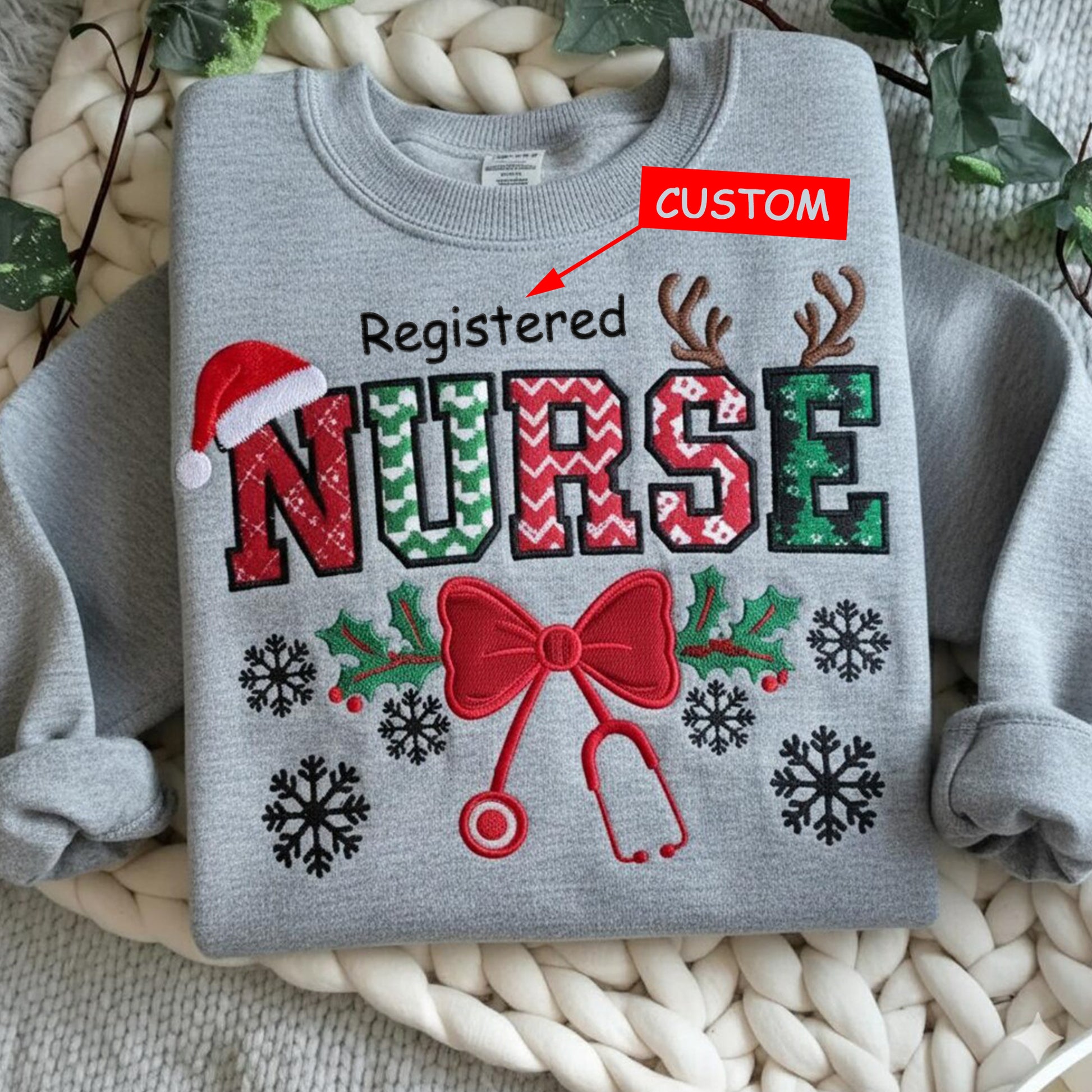 Custom Christmas Embroidery Sweatshirt For Nurses and Doctors