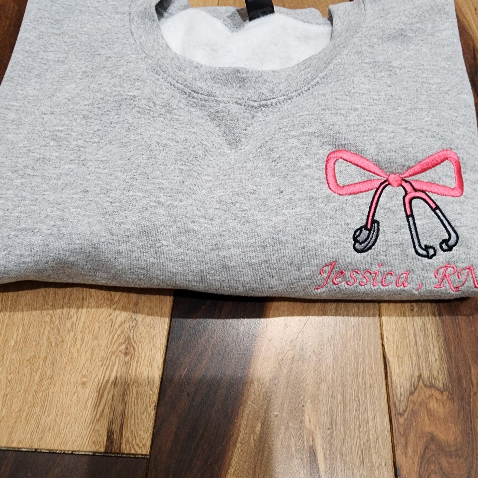 Custom Embroidered Sweatshirt Nurse Coquette, Stethoscope Bow Embroidery For RN, CAN, LPN, ER, ICU, School Nurses