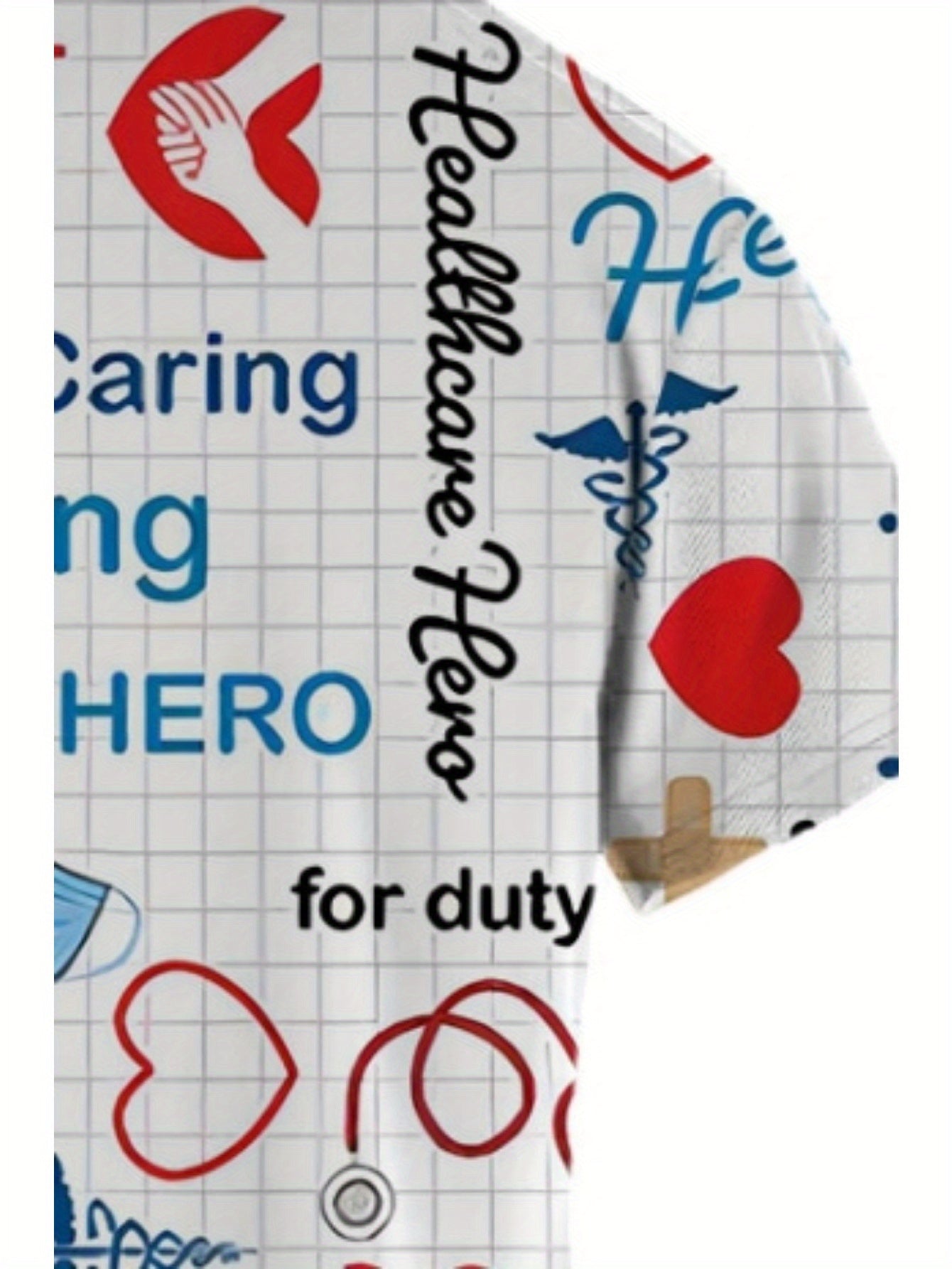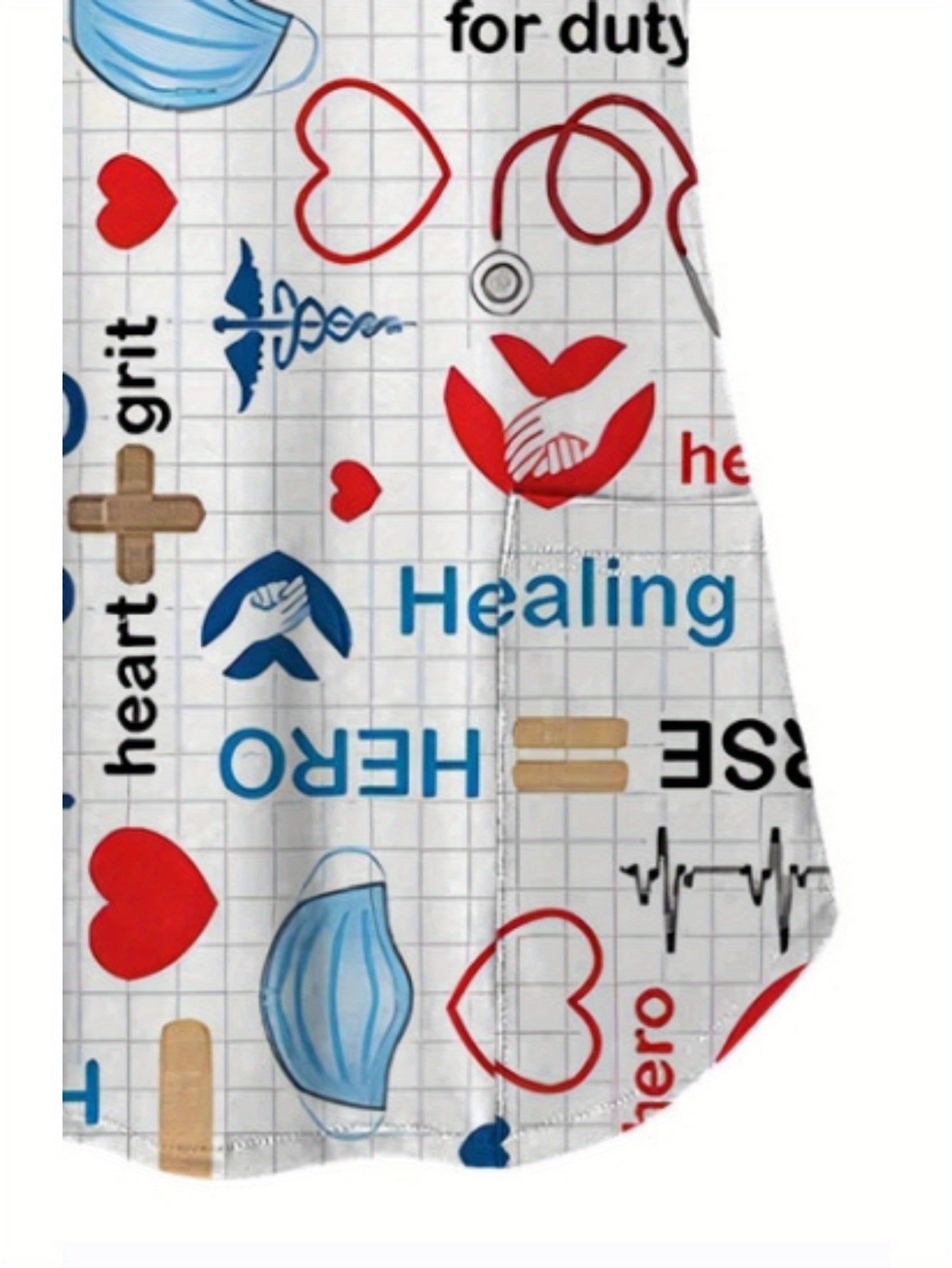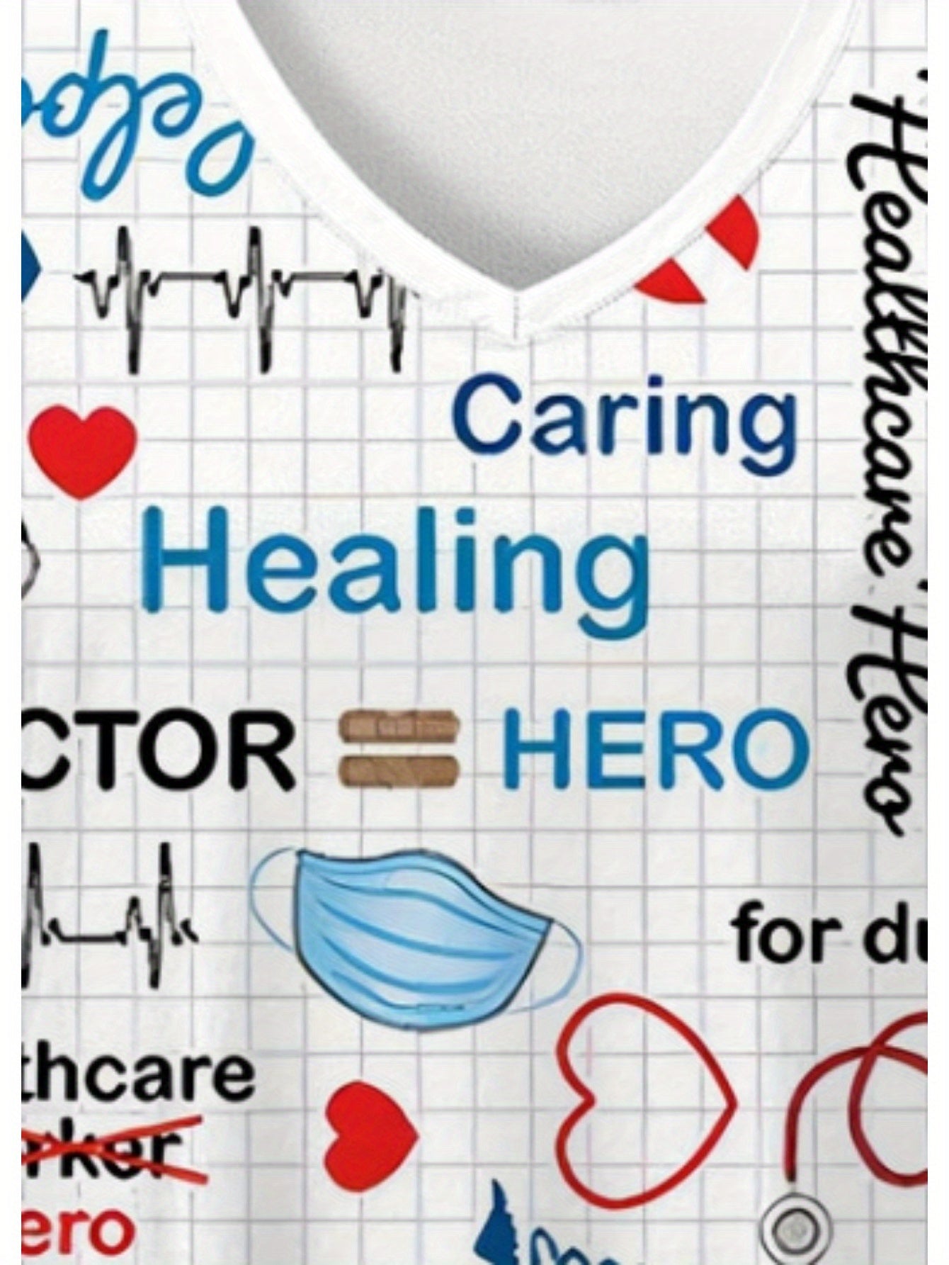 New Spring Fashion V-Neck Printed Short Sleeve Shirt Top - Women's Workwear with Pockets