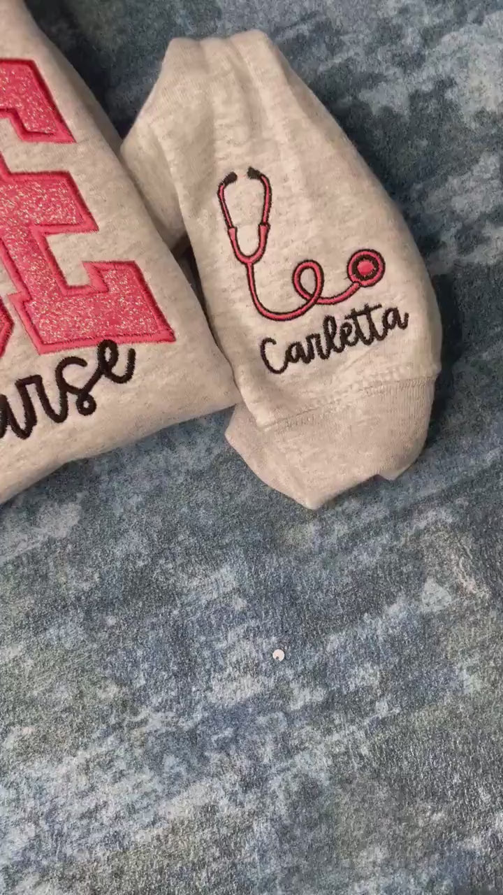 Personalized Nurse Embroidered Sweatshirt: Glitter Stethoscope Sleeve