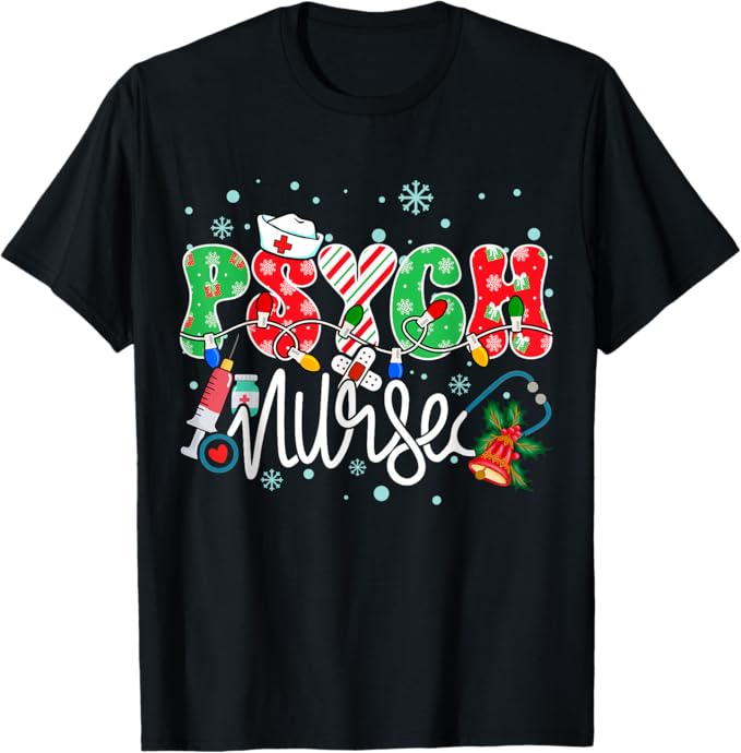 Psych Nurse Funny Xmas Light Stethoscope Christmas Nurse Shirts